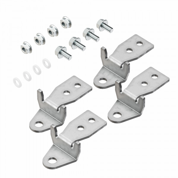 Кронштейны для крепления корпусов ST, STX, STE, STEX, SDE предназначены для настенного монтажа шкафов и боксов различного типа. Изделия изготавливаются из оцинкованной стали толщиной 3 мм, что обеспечивает устойчивость к механическим нагрузкам и коррозионным воздействиям. Конструкция допускает вертикальное или горизонтальное расположение без снижения степени пыле- и влагозащиты корпуса. Максимальная статическая нагрузка на комплект из четырех кронштейнов составляет до 400 кг, что позволяет использовать их при установке оборудования среднего и большого веса. Комплект поставки: 4 кронштейна, монтажные аксессуары.