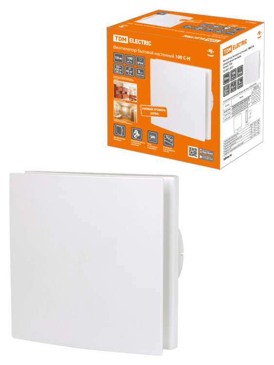 TDM Вентилятор бытовой настенный, 100 С-Н, декоративная накладка, белый,