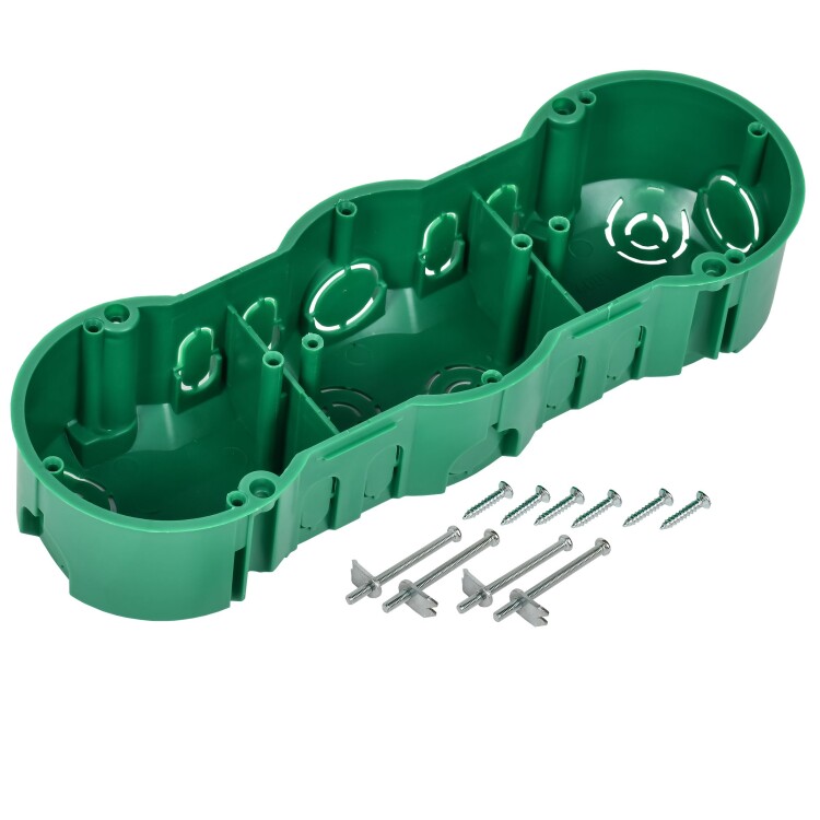 IEK Коробка КМ40024 установочная 3 места d212х70x45 для полых стен (с саморезами и мет. лапками)