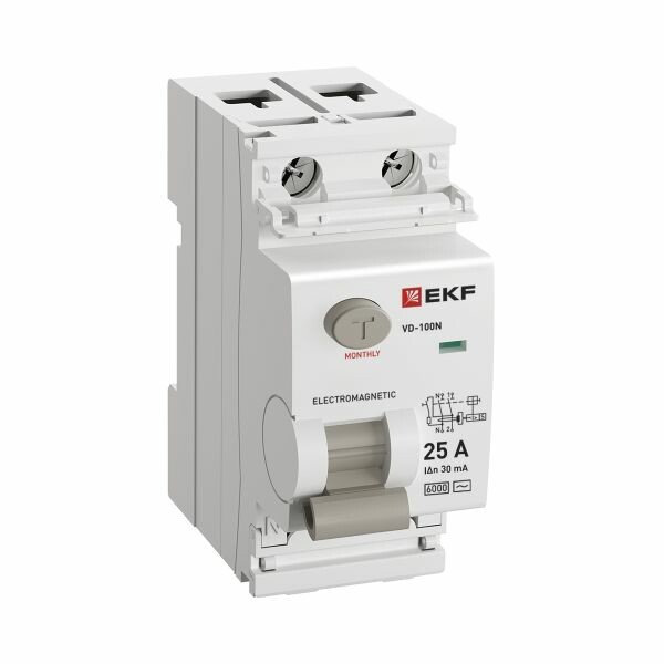 Выключатель дифференциального тока ВД-100N 2P 25А 30мА тип AC эл-мех 6кА PROXIMA EKF