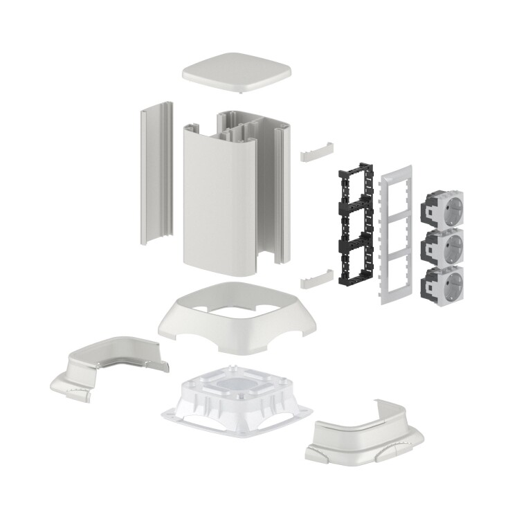 Колонны «Aero» применяются для организации рабочих мест в зонах с ограниченным пространством и в помещениях, где рабочие места расположены далеко от стен. В них устанавливаются ЭУИ серий «Avanti», ЭУИ «Вива» (Viva), «Brava». Внутреннее пространство колонны разделяется алюминиевой перегородкой на две или три секции при помощи пластикового разделителя (код 01415). Стойка высотой 0,25 м устанавливается на пол и может вмещать до 12 модулей. Комплект поставки: стойка колонны алюминиевая –1 шт., крышка колонны алюминиевая — 2 шт., заглушка торцевая верхняя пластиковая — 1 шт., база на пол металлическая — 1 шт., накладка лицевая на базу пластиковая — 1 шт., накладка внутренняя на базу пластиковая — 2 шт., винт — 4 шт. Каркасы и рамки для ЭУИ заказываются дополнительно. Цвет — светло-серебристый металлик.