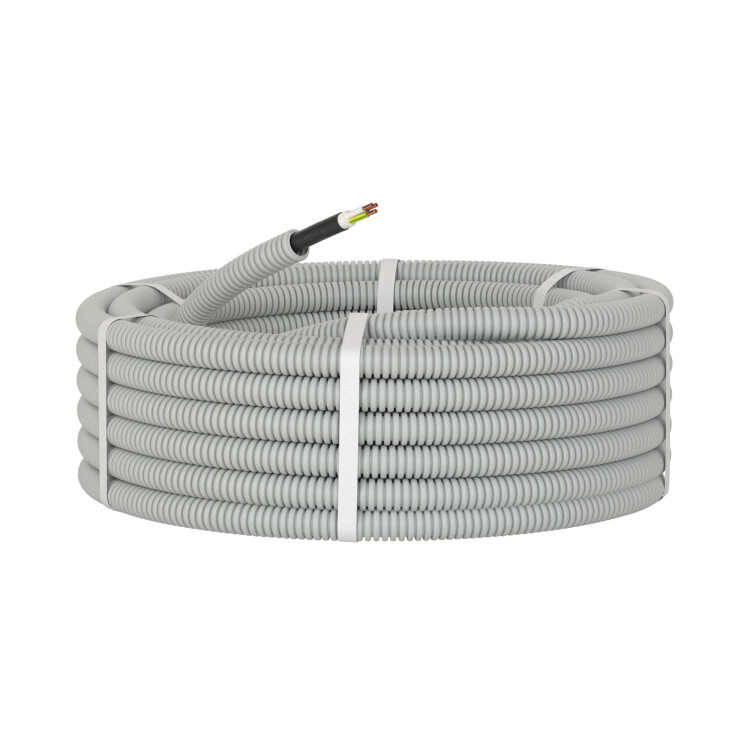 Гофрированная электротруба из ПВХ от ДКС – это труба, внутри которой уже протянут кабель. Это решение для быстрого монтажа, позволяющее сократить время и усилия, затраченные на протяжку кабеля при прокладке электрических сетей.
