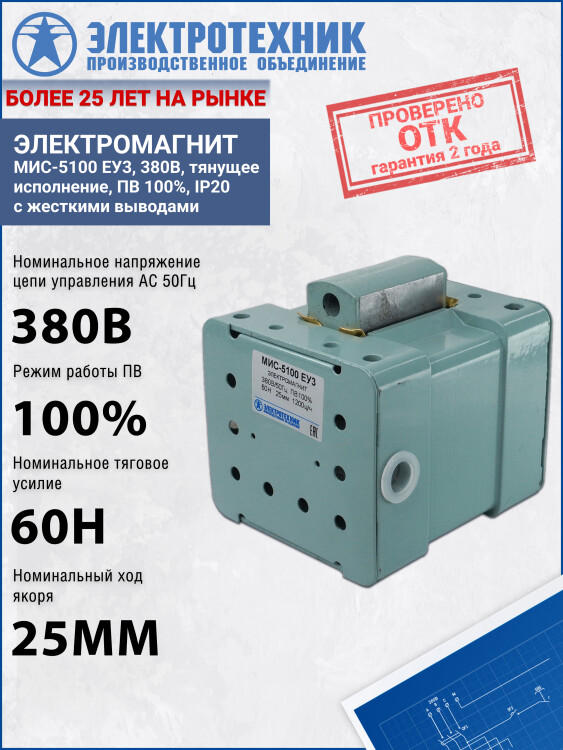 МИС-5100 ЕУ3, 380В, тянущее исполнение, ПВ 100%, IP20, с жесткими выводами, электромагнит (ЭТ)