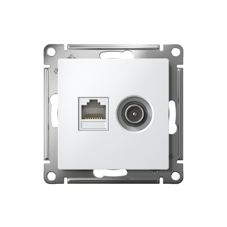 Механизм Systeme Electric (ранее Schneider Electric) серии AtlasDesign в цвете белый двойной розетки разъёмами RJ45 категории 5е и TV предназначен для удобного и быстрого подключения вашего компьютера и телевизора к соответствующим сетям. Пластик с ионами серебра в белом цвете обеспечивает антибактериальный эффект. Лицевые детали из качественного ABS-пластика, устойчивого к царапинам и УФ-излучению. Усиленные прямые монтажные лапки для лучшей фиксации механизма в монтажной коробке.