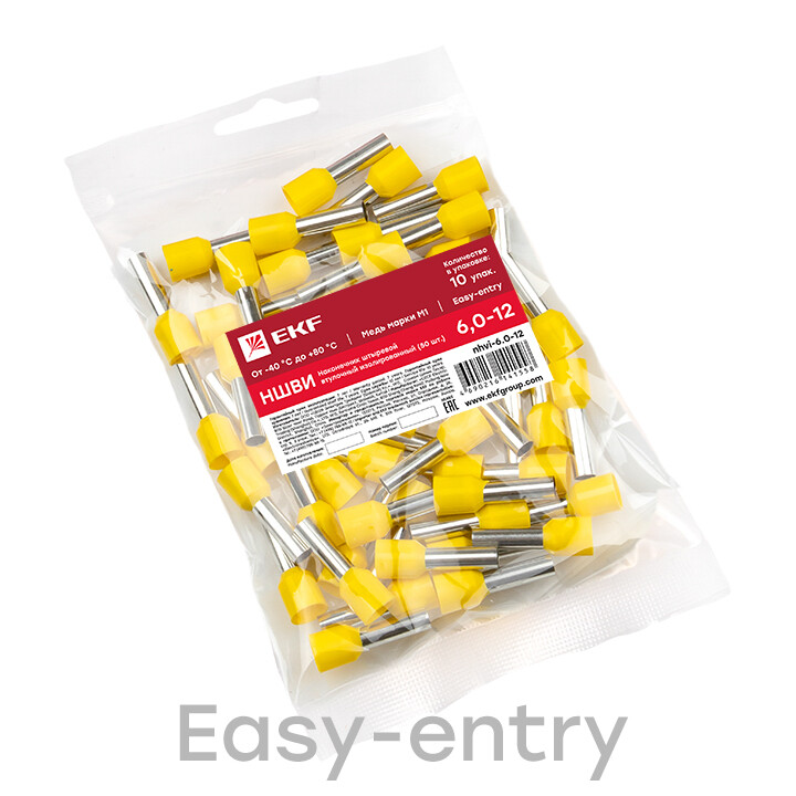 Одинарные и двойные втулочные наконечники (НШвИ и НШвИ2) EKF PROxima являются единственными специально разработанными наконечниками под опрессовку, которые полностью заменяют обязательный процесс облуживания многопроволочных медных проводов (типа ПВ-3, ПВС и т.п.) при монтаже различного электрооборудования. Втулочные наконечники состоят из медной луженой трубки, один конец которой развальцован для облегчения ввода многожильного провода и изолирующей манжеты из полипропилена.