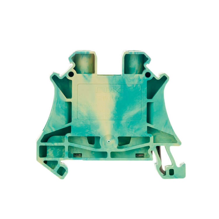 Желто-зеленый цвет, 2 точки подключения, 10 мм². 1 канал для вставных перемычек. Габариты (В×Ш×Г) 47,5×53×10,2 мм.