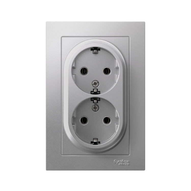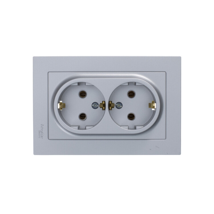 Розетка двойная в сборе Systeme Electric (ранее Schneider Electric) серии AtlasDesign в цвете алюминий с заземлением, без шторок подходит для сетей 250 В, на ток 16 А. Заземляющий контакт обеспечивает дополнительную защиту от удара электрическим током. Лицевые детали из качественного ABS-пластика, устойчивого к царапинам и УФ-излучению. Двойная розетка позволяет подключить два устройства в одном месте. Изделие поставляется в комплекте с рамкой того же цвета.