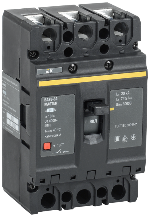 Выключатель автоматический ВА88-32 3Р 80А 25кА MASTER IEK