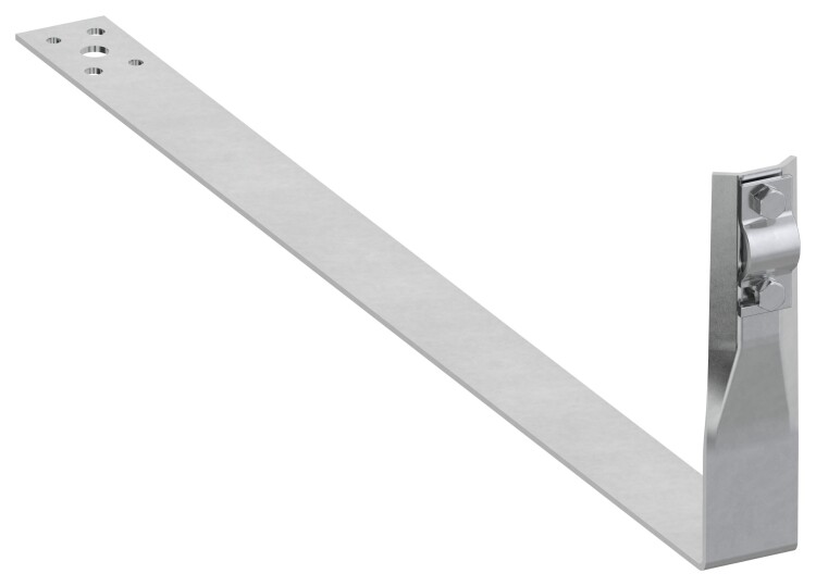Держатель проводника круглого для черепичной кровли с болтовым зажимом предназначен для закрепления прутка на черепичной, мягкой и шиферной кровле. Держатель крепится к рейкам крыши при помощи метизов. Фиксация проводника происходит при помощи болтового соединения перпендикулярно длинной стороне держателя. Материал корпуса - сталь горячеоцинкованная.