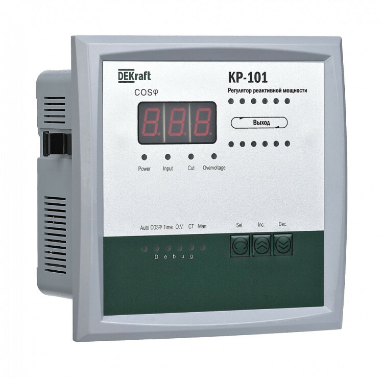 Регуляторы реактивной мощности серии КР-101 - это специальный контроллер для компенсации реактивной мощности в низковольтной системе распределения электроэнергии, который определяет коэффициент мощности в сети и в зависимости от его значения производит автоматическое включение или отключение конденсаторных батарей для обеспечения требуемого коэффициента мощности. Напря жение катушки управляемого контактора 380 В, 4 ступеней регулирования.