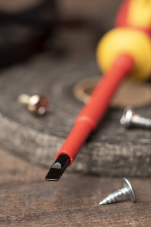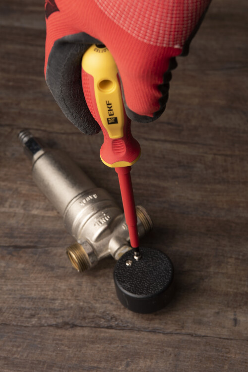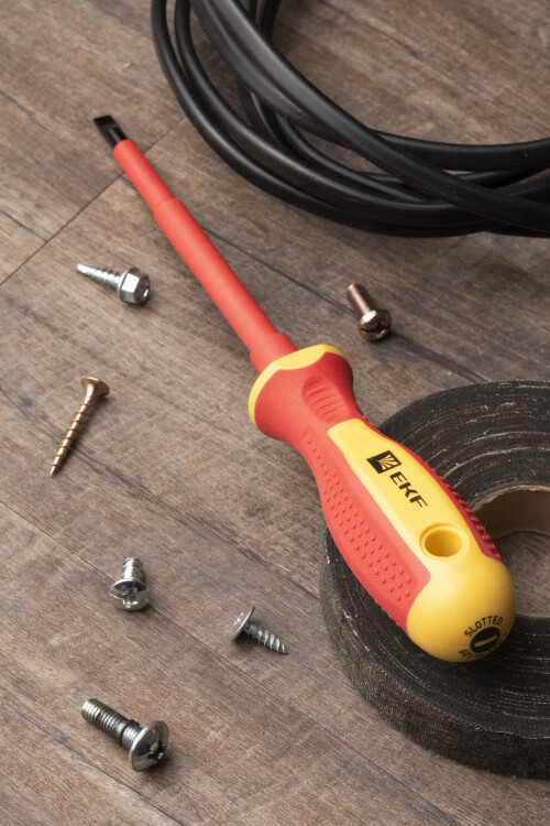 Шлицевая отвертка SL с изолированной рабочей частью предназначена для всех видов электромонтажных работ в том числе под действующим напряжением до 1000В.
