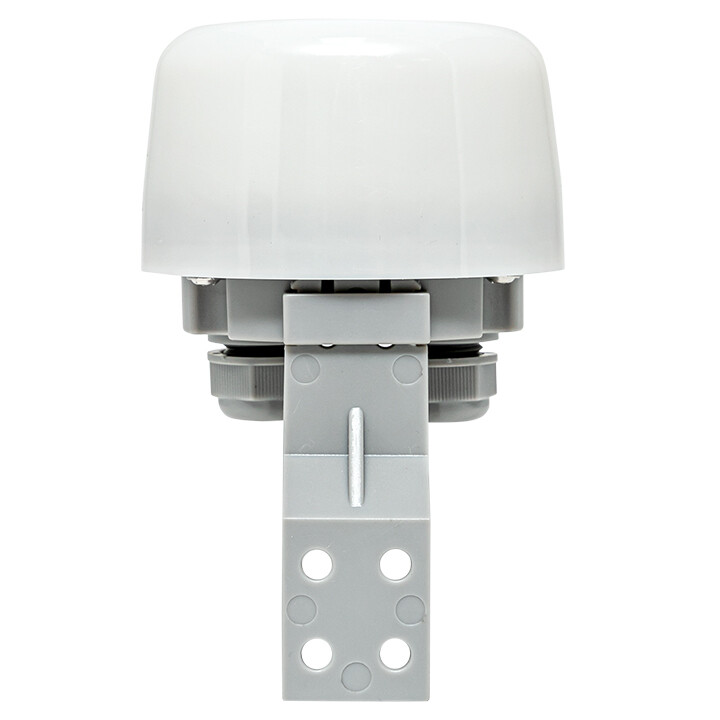 Фотореле PS-5 применяется для управления освещением или другой нагрузкой в зависимости от уровня освещенности. Обычно фотореле применяется в системах управления уличным освещением и включает/выключает нагрузку в момент захода/восхода солнца. К фотореле допускается прямое подключение нагрузки с током не более 15А. Нагрузка большей мощности может быть подключена при помощи контактора. Порог срабатывания по освещенности настраивается в диапазоне 5-50 лк. Фотореле имеет степень защиты IP66, что позволяет устанавливать его в условиях сильного воздействия пыли и влаги.