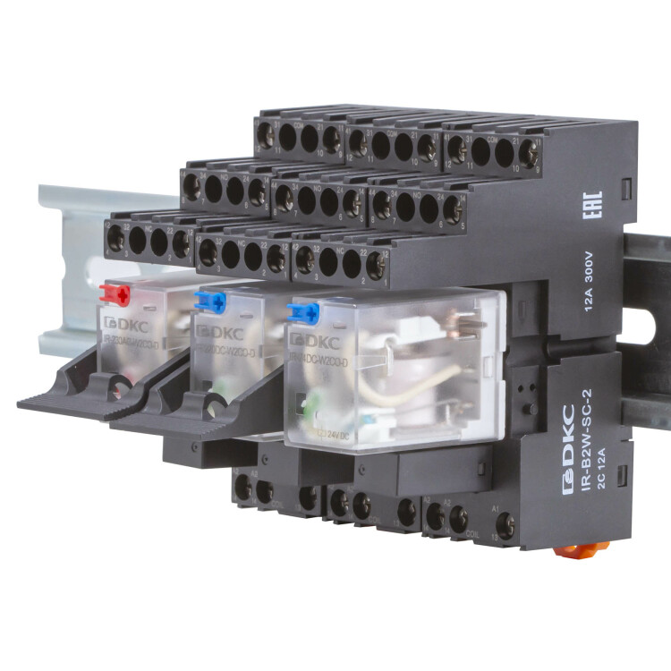 Колодка c винтовыми клеммами. Уставновка на Din-рейку. Для реле на 4 контактные группы серии IR. Колодка 3-х уровневая. Подключение питания с одной стороны, коммутация с противоположной.