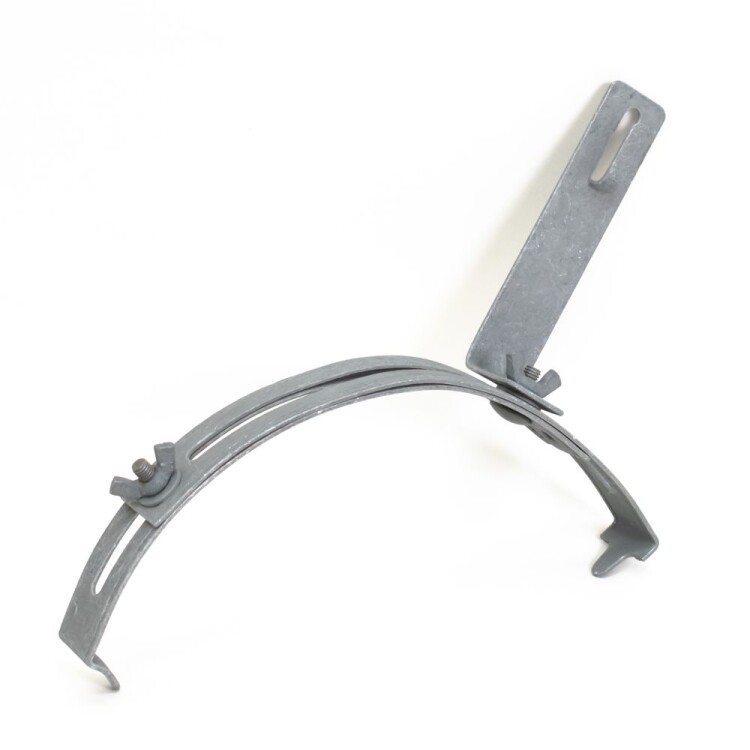 Держатель коньковый регулируемый 130-240 мм TDZ Промрукав предназначен для крепления прута диаметром 6-10 мм на круглом коньке кровли. Быстрый монтаж осуществляется за счет крепежных усиков к коньку, а регулировка диаметра держателя позволяет надежно крепить элемент к различным формам конька.