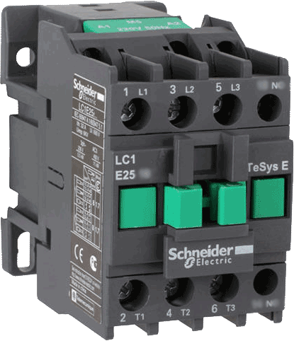 Контактор серии LC1 серии Easypact TVS Schneider Electric - 3-полюсный + 1НО - номинальный ток - 40 (АС1)/25 А (АС3) - напряжение управления - 220 В пер.тока 50 Гц - ВхШхГ - 74х46х80 мм - монтаж - на панель или DIN-рейку. Применение: управление электродвигателями. Преимущества: Благодаря конструктивным особенностям катушки управления контакторы EasyPact TVS можно отнести к энергоэффективному типу оборудования.