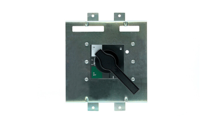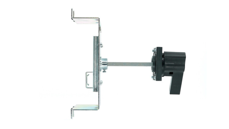 Ручка поворотная на дверь шкафа РП-336Е; состоит из ручки, удлинительной оси и поворотной рукоятки; предназначена для ручного дистанционного переключения (включения и отключения) автоматического выключателя серии ВА-336Е без открытия двери шкафа.