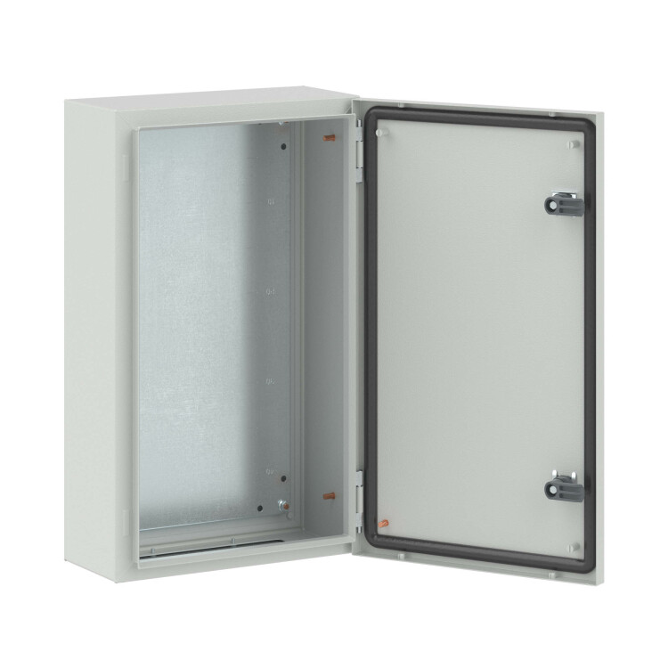Навесные корпуса ST предназначены для систем автоматизации и распределения электроэнергии. Корпус, дверь, фланец изготавливаются из стали толщиной 1,2 мм с атмосферостойким порошковым покрытием, цвет RAL7035. Монтажная плата - из оцинкованной стали толщиной 1,8 мм. Степень защиты IP66, ударопрочность IK10, сейсмостойкость 9 баллов по шкале MSK-64, климатическое исполнение УХЛ1, ОМ2, ОМ3, группа горючести Г1. Комплект поставки: корпус, дверь реверсивная, монтажная плата с двунаправленной разметкой, дверные рейки, поворотный замок 2 шт., сплошной фланец для ввода кабеля 1 шт., комплект заземления без проводов, монтажные аксессуары., комплект заземления без проводов, монтажные аксессуары. Габариты 500x300x150 (ВхШхГ) мм.
