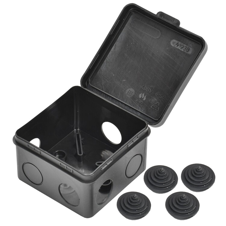 Монтажные коробки для открытого монтажа предназначены для разветвления проводов и кабелей, также для скрытия и дополнительной защиты мест коммутации. Используются как часть системы электрической канализации, состоящей из жестких и гофрированных труб. Коробки с повышенной степенью защиты могут быть использованы на открытом воздухе, а также во влажных и пыльных помещениях. Материал изготовления: полипропилен. Материал коробок является безгалогенным («HF» — halogen-free). Цвет: черный. Степень защиты: IP54. Количество вводов: 7 - D=20мм. Размер:80х80х50мм.