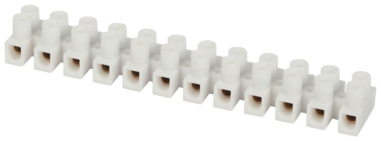 - клеммная колодка включает в себя 12 парных зажимов и может быть легко разделена на блоки с меньшим количеством клеммных пар, что позволяет использовать её под различные задачи.