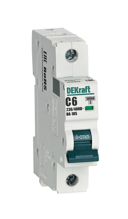Автоматический выключатель серии ВА-105 DEKraft; 1P; ном. ток 6 А; характеристика C; откл. способность 10 кА; ширина модуля 18мм. Аппараты имеют механизм мгновенной коммутации, 6 монолитных заклепок, которые повышают прочность корпуса. Боковые каналы охлаждения повышают стабильность работы при высоких температурах окружающей среды. Есть возможность установки дополнительных аксессуаров с левой стороны устройства. Аппарат на 100% совместим с корпусами и оболочками DEKraft и Systeme Electric.