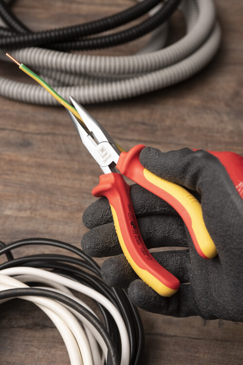 Длинногубцы изогнутые используются для захвата и удержания мелких элементов, проволоки, колец, винтиков и выполнения различных работ в труднодоступных местах.