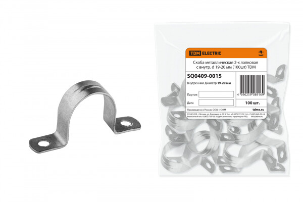 Скоба металлическая 2-х лапковая с внутр. d 19-20 мм (100шт)