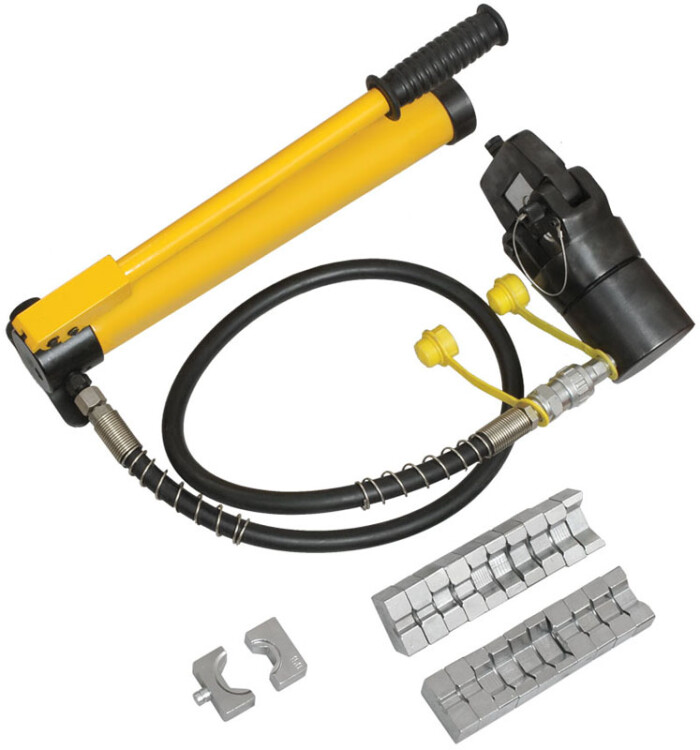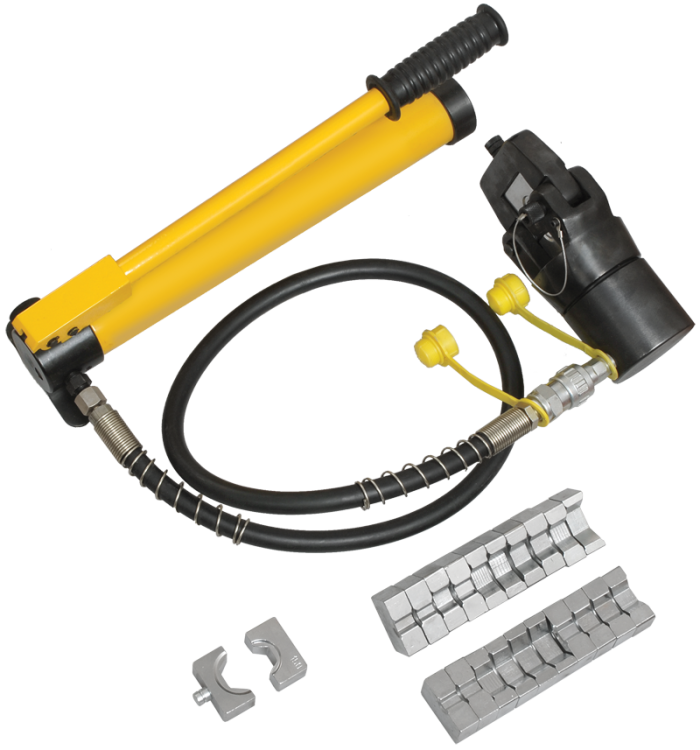 Гидравлические прессы позволяют создавать механические соединения типа кабельная жила-гильза или кабельная жила-наконечник с помощью механической опрессовки. Прессы снабжены сменными матрицами, предназначенными для различных сечений жил.