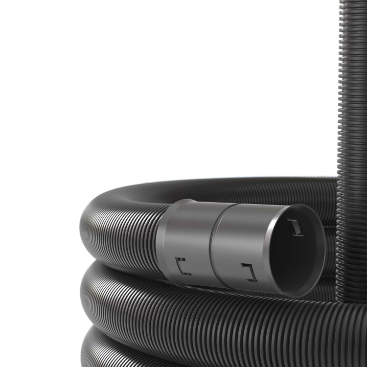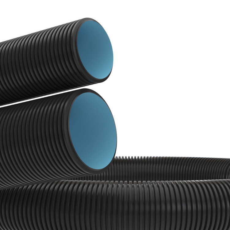 Двустенные трубы ДКС используются для прокладки электропроводки и кабельных линий в кабельных сооружениях и наружных электроустановках: мосты, путепроводы, эстакады, галереи, в местах выходов из земли и вводе в здание. Трубы не распространяют горение и устойчивы к ультрафиолетовому излучению. Диаметр - 90 мм. Материал - полиэтилен низкого давления (ПНД). Внешняя стенка - черная, внутренняя - голубая. Каждая бухта трубы комплектуется стальной протяжкой и соединительной муфтой. Температура эксплуатации от -55 до +90 °С. Длина в бухте - 50 м.