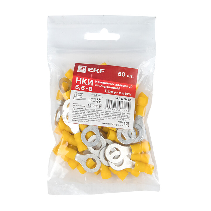 EKF PROxima Наконечник кольцевой изолированный НКИ 6.0-8 (50шт.).