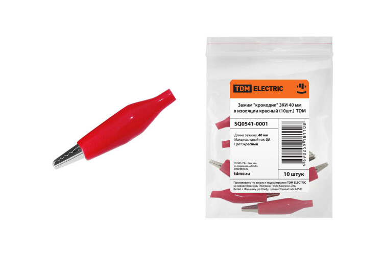 TDM Зажим "крокодил" ЗКИ 3А 40мм в изоляции красный (10шт)