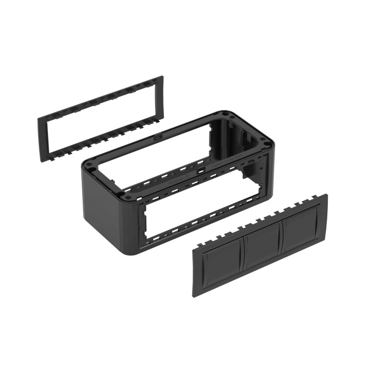 Вертикальное расширение напольной башенки BUS. Назначение: вертикальное расширение напольной башенки BUS. Характеристики: монтаж ЭУИ с 2 сторон, по 6 модулей; монтаж ЭУИ серий ЭУИ «Вива» (Viva) и «45×45 мм» в соответствующих каркасах. Комплект поставки: стойка − 1 шт.; саморезы для монтажа стойки к основанию базы − 4 шт.; внутренняя центральная перегородка − 1 шт.; рамка на 6 модулей − 2 шт.; заглушка сплошная на 6 модулей (накладка для декора неиспользуемого проёма башенки) − 1 шт. Цвет чёрный