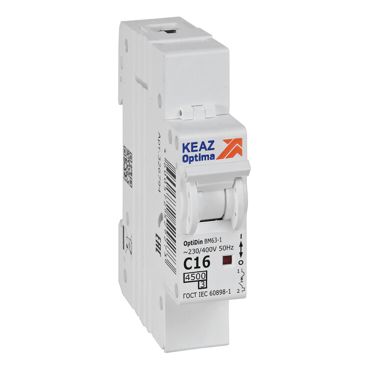 КЭАЗ OptiDin BM63 Автоматический выключатель 1P 16А C 4,5кА AC (BM63-1C16-4,5-УХЛ3).