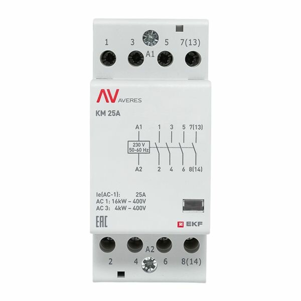 EKF Averes Контактор модульный КМ 25А 4NO 230VAC (2 мод.).