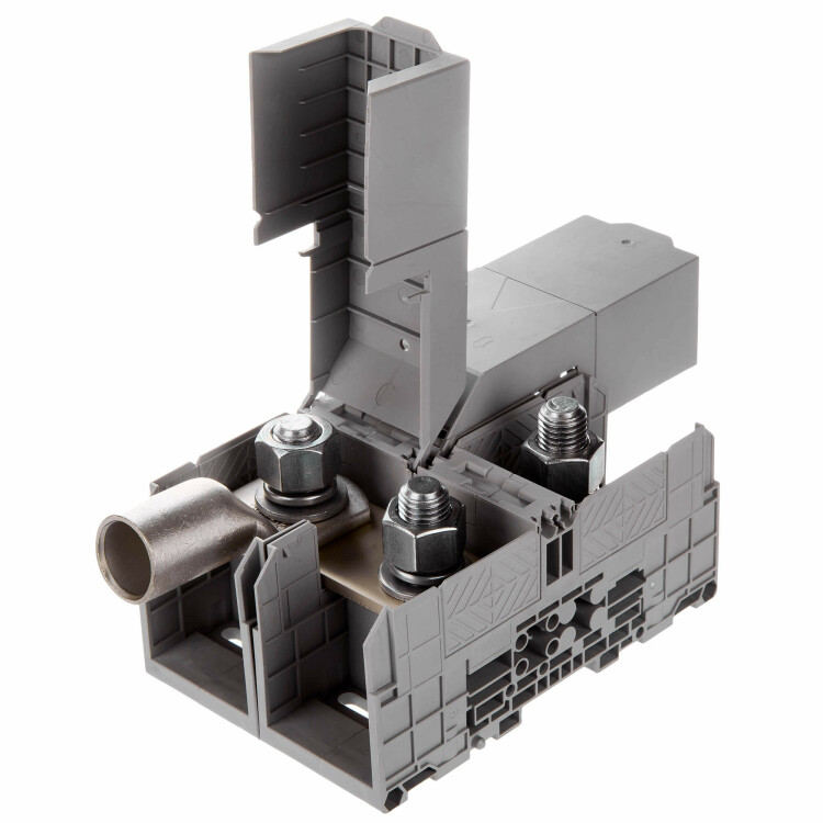 Перемычка двухполюсная для быстрого и надежного перемыкания болтовых клемм 185 мм² FER-185. Устанавливается на шпильки-выводы клемм