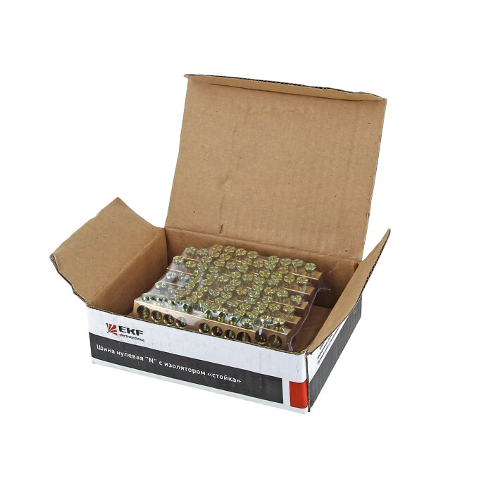 Шины предназначены для присоединения нулевых проводников (шина N) и заземления (шина PE). Шины выполнены из латуни и никелированной латуни. Нулевая шина устанавливается на изоляторе.