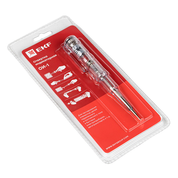 Индикаторная отвертка EKF – инструмент для безопасного определения контактным и бесконтактным способом наличия электрического тока в электрических сетях с напряжением 220 В, а также прозвонки целостности электрических цепей (электрических лампочек, предохранителей, проводов, вилок и т. д.).