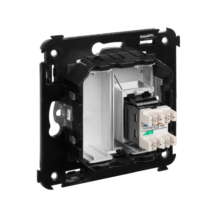 Телефонн ая розетка RJ-12 от ДКС устанавливается в стену (скрыто) и применяется для коммутации линий телефонной связи в патч-панелях или для связи телефонных аппаратов с розеткой. Материал – металл, термопласт.
