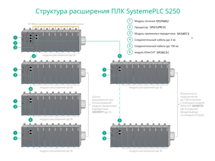 Модуль связи EtherCAT ведомый серии SystemePLC S250 с 2 портами EtherCAT, напряжением питания 24 В постоянного тока