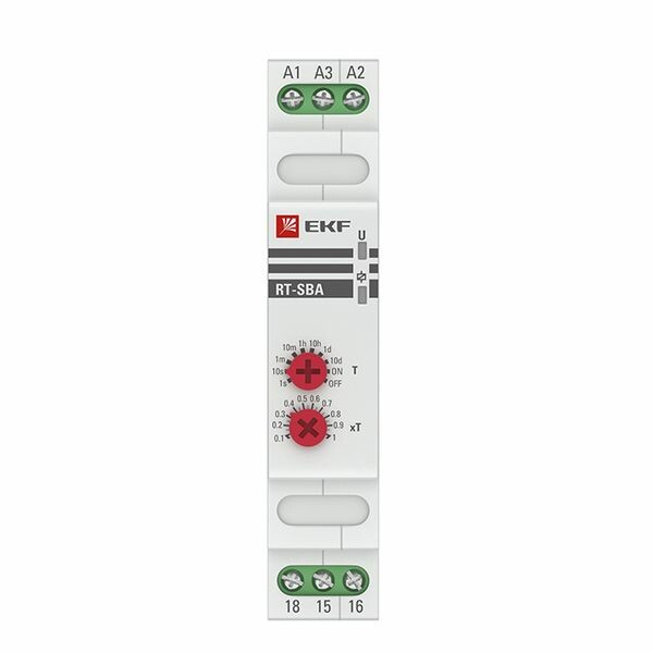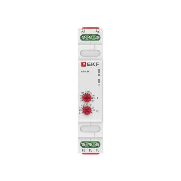 Реле времени RT-2C EKF PROxima является электронным коммутационным аппаратом с регулируемой установкой времени. Реле предназначено для создания циклической работы схемы с задержкой на включение. Переключение диапазонов времени производится с помощью поворотных регуляторов, расположенных на лицевой поверхности реле. Реле применяется в системах промышленной и бытовой автоматики: в вентиляционных, отопительных, осветительных. Категория применения – АС-15 (управление электромагнитами мощностью свыше 72 Вт). Многофункциональное реле времени RT-10 EKF PROxima является электронным коммутационным аппаратом с регулируемыми режимами работы и регулируемой установкой времени. Реле предназначено для включения или отключения нагрузки по заданным временным величинам и режимам работы. Переключение диапазонов времени и режимов работы производится с помощью поворотных регуляторов расположенных на лицевой поверхности реле. Реле применяется в системах промышленной и бытовой автоматики: в вентиляционных, отопительных, осветительных системах. Категория применения – АС-15 (управление электромагнитами мощностью свыше 72 Вт). Реле времени RT-SBA EKF PROxima является электронным коммутационным аппаратом с регулируемой установкой времени. Реле предназначено для включения нагрузки с задержкой времени включения. Переключение диапазона времени производится с помощью поворотного регулятора, расположенного на лицевой поверхности реле. Реле применяется в системах промышленной и бытовой автоматики: в вентиляционных, отопительных, осветительных системах. Категория применения – АС-15 (управление электромагнитами мощностью свыше 72 Вт).