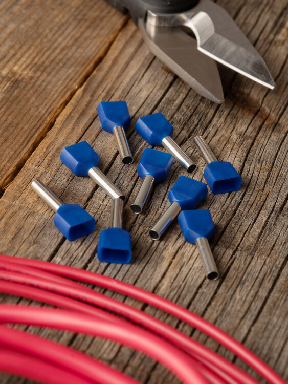 Одинарные и двойные втулочные наконечники (НШвИ и НШвИ2) EKF PROxima являются единственными специально разработанными наконечниками под опрессовку, которые полностью заменяют обязательный процесс облуживания многопроволочных медных проводов (типа ПВ-3, ПВС и т.п.) при монтаже различного электрооборудования. Втулочные наконечники состоят из медной луженой трубки, один конец которой развальцован для облегчения ввода многожильного провода и изолирующей манжеты из полипропилена.
