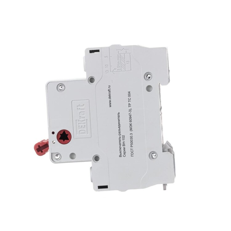 Выключатель-разъединитель серии ВН-102 Dekraft; 2P; номинальный ток 40 А; установка – на DIN-рейку; установочное положение - любое. Выключатели-разъединители применяются для ручного включения/отключения сетей напряжением до 400 В. Специальные мостиковые контакты обеспечивают надежный разрыв цепи; они полностью исключают возможность перекрытия дугой по изоляции. Усиленная рукоятка управления обеспечивает большое количество включений/отключений.
