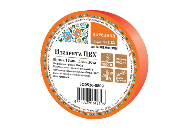 Изолента ПВХ 15мм*20м, Красная, Народная