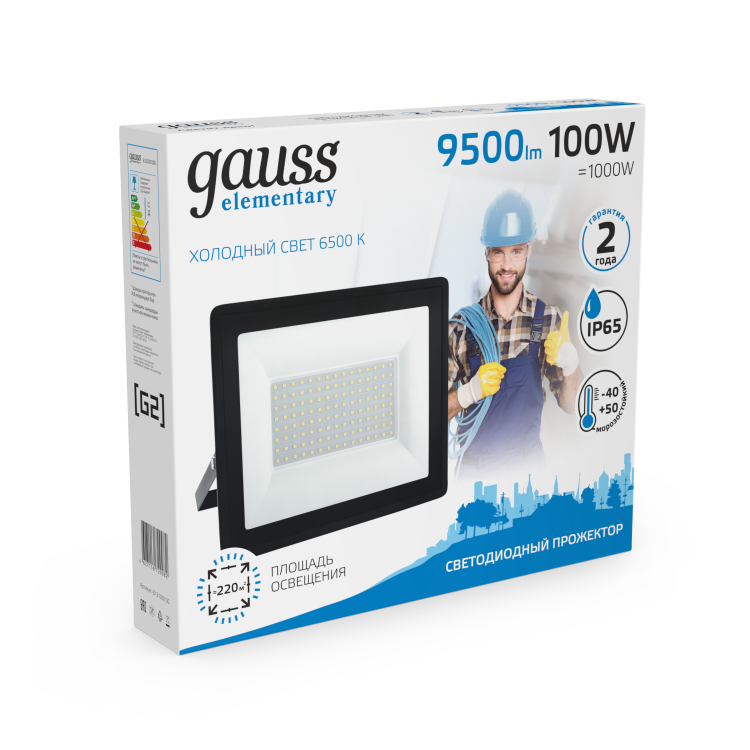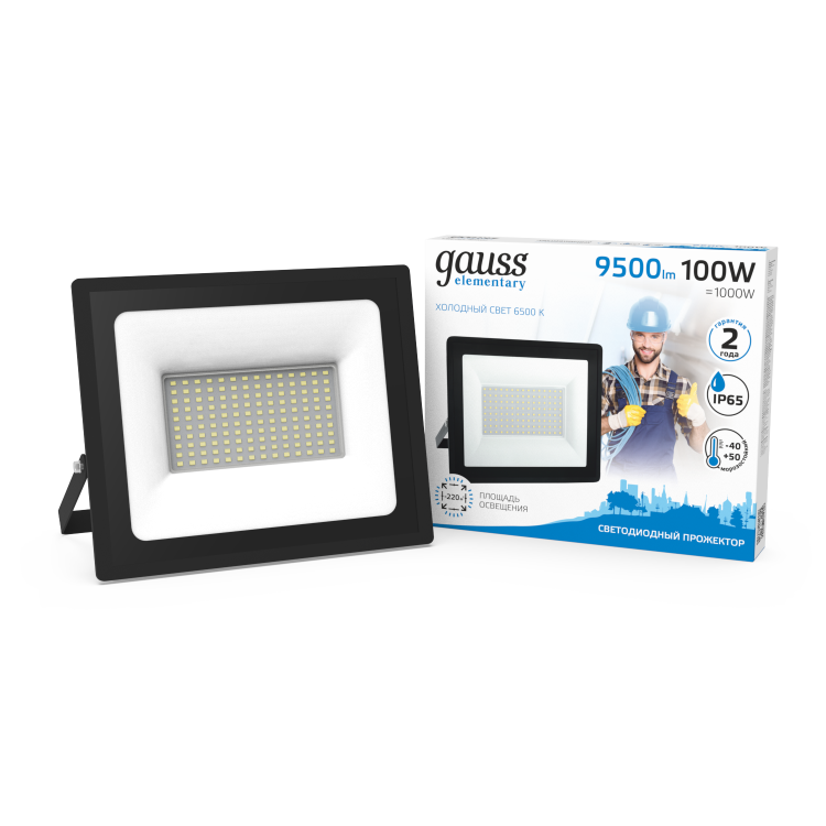 Gauss Прожектор Elementary 100W 9500lm 6500К 175-265V IP65 черный LED
