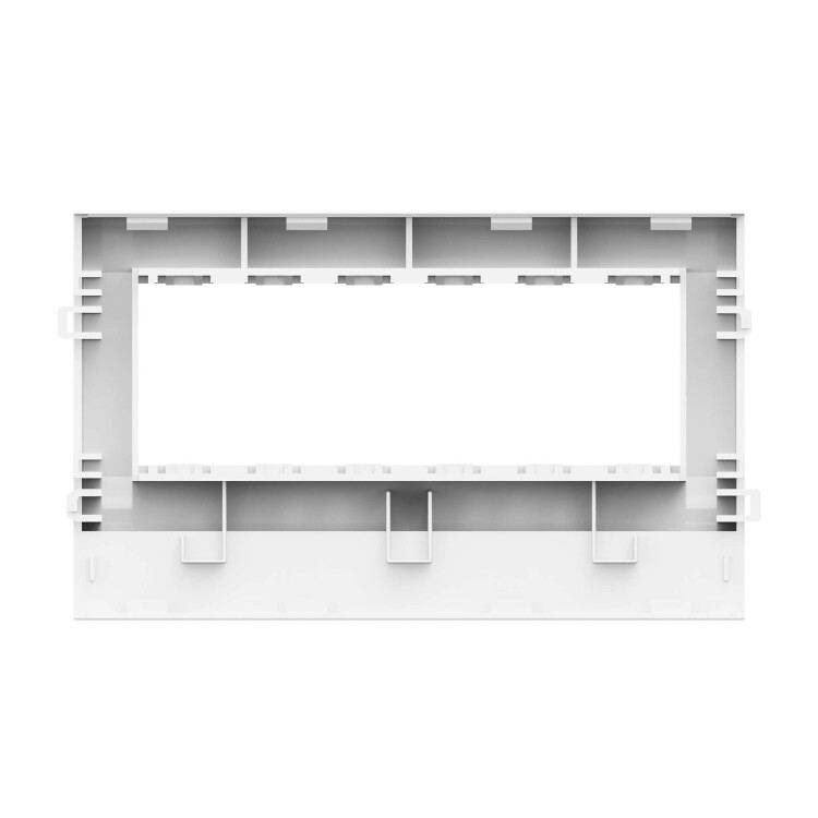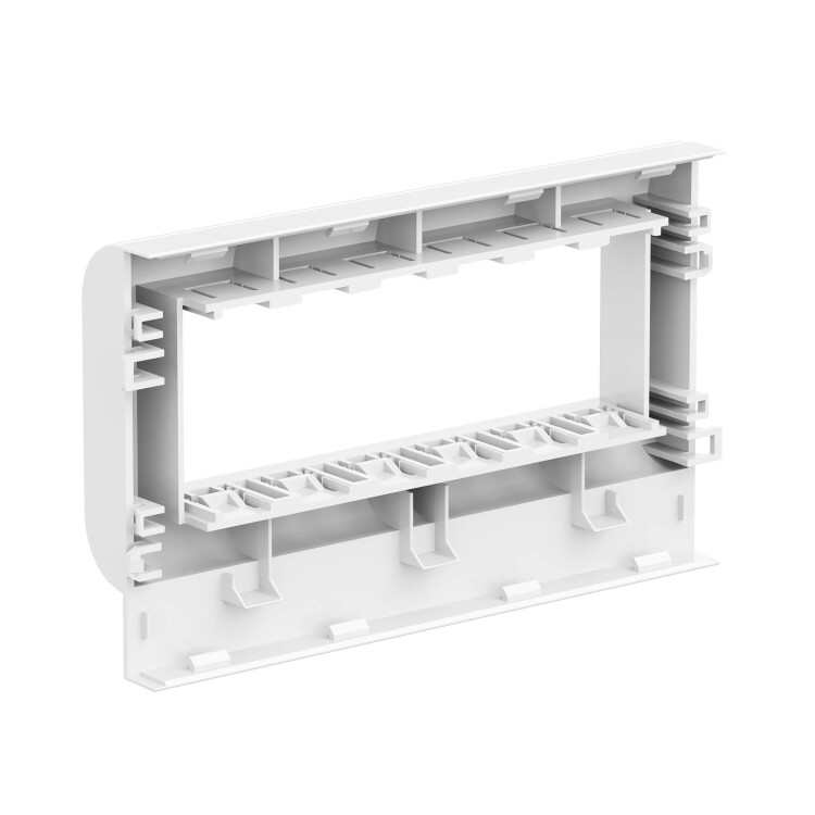 Рамка-суппорт на 6 модулей, PDA-3BN. Назначение: организация рабочих мест − монтаж электроустановочных изделий в пластиковые короба, тип TA-GN серии "In-liner Classic". Монтаж: монтаж суппорта внутри короба с помощью защелкивания, монтаж электроустановочных изделий в рамку − защелкиванием снаружи. Характеристики: материал – АБС-пластик и поликарбонат. Комплектация: рамка; суппорт. Типоразмер короба: 100х40, 100х60, 100х80. Цвет: белый