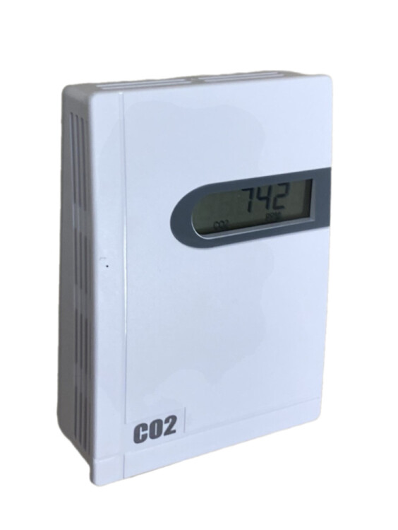 Датчик уровня концентрации углекислого газа CO₂ комнатный, настенная установка, аналоговый выходной сигнал 0…10 В, жидкокристаллический экран с отображением измеренного значения, напряжение питания от 18 до 30 В постоянного или переменного тока, , винтовые клеммные колодки