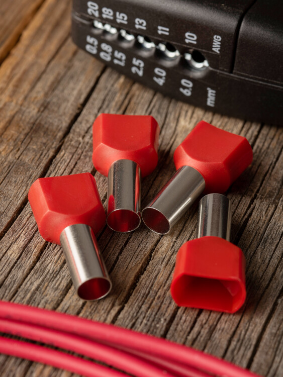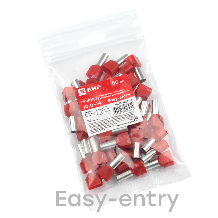 Одинарные и двойные втулочные наконечники (НШвИ и НШвИ2) EKF PROxima являются единственными специально разработанными наконечниками под опрессовку, которые полностью заменяют обязательный процесс облуживания многопроволочных медных проводов (типа ПВ-3, ПВС и т.п.) при монтаже различного электрооборудования. Втулочные наконечники состоят из медной луженой трубки, один конец которой развальцован для облегчения ввода многожильного провода и изолирующей манжеты из полипропилена.