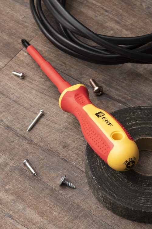 Крестовая отвертка PH с изолированной рабочей частью предназначена для всех видов электромонтажных работ в том числе под действующим напряжением до 1000В.
