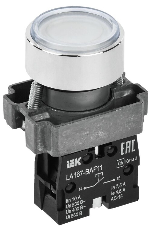 IEK Кнопка LA167-BAF11 d=22мм 1з белая