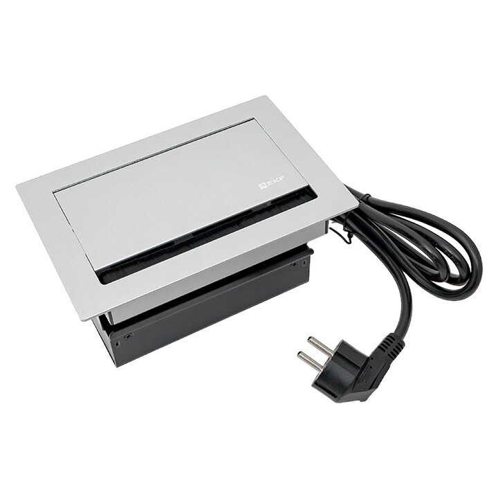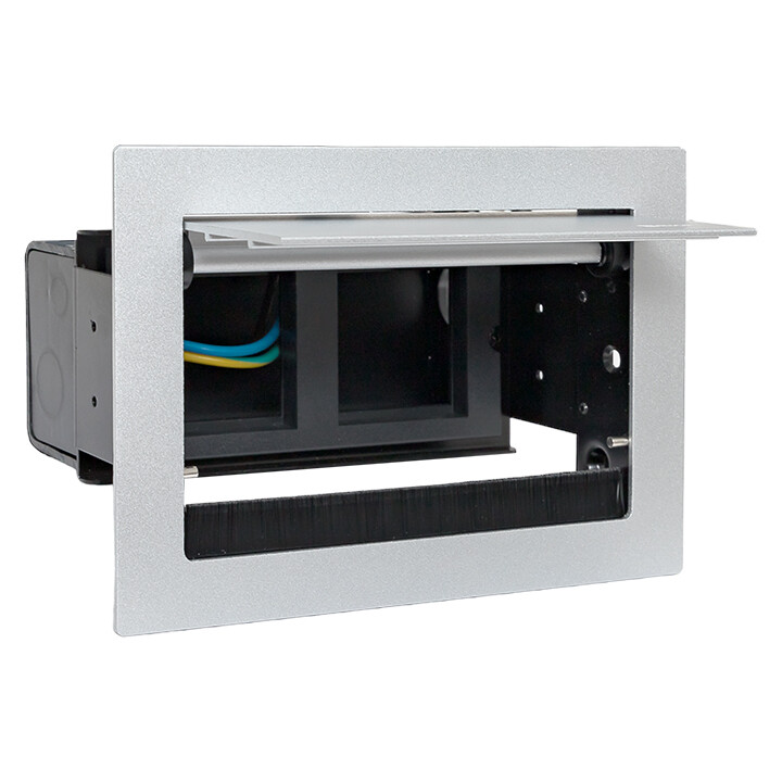 Встраиваемый настольный лючок, 4 модуля, C-Line. Настольный лючок – изделие, включающее в себя верхнюю открывающуюся крышку и кронштейны для крепления приборных рамок и приборной коробки. Настольный лючок предназначен для размещения ЭУИ в столе. Монтаж производится в предварительно подготовленное отверстие 160х104 мм для 4 модулей. Сетевой кабель питания (2 метра), приборная коробка, приборные рамки и крепеж в комплекте.