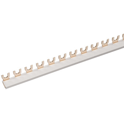 Применяются для удо бного и безопасного соединения групп: ВА (выключатели автоматические), АД (автоматы дифференциальные), ВД (выключатели дифференциальные), ВН (выключатели нагрузки). Шины с шагом 18 мм предназначены для коммутации аппаратуры шириной, кратной одному модулю, шины с шагом 27 мм предназначены для коммутации изделий шириной, кратной полутора модулям. Шины, рассчитанные на номинальный ток 100 А, могут быть использованы с номинальным током 125 А, если вводной автомат подключать по центру. Для полуторамодульных шин имеются боковые заглушки.